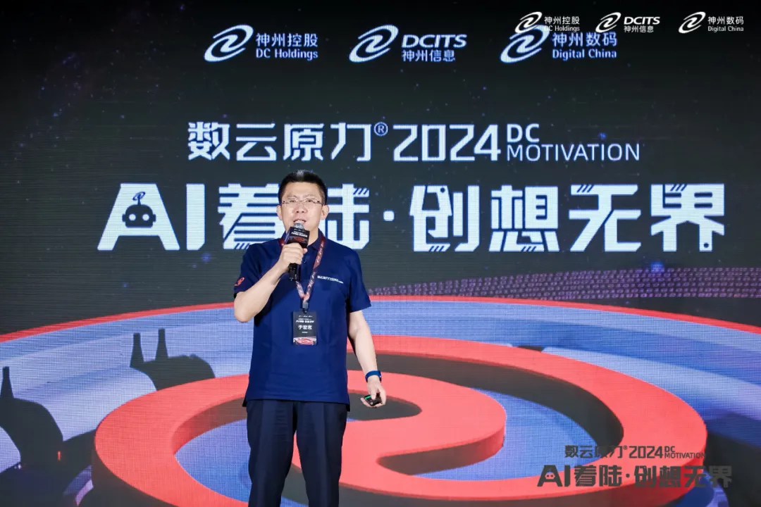 5月9日,在神州控股、神州信息、ng28南宫集团联袂主办的数云原力®大会2024启幕仪式上,神州信息常务副总裁于宏志重磅发布面向金融的AI原生产品——九天揽月“AI+”。